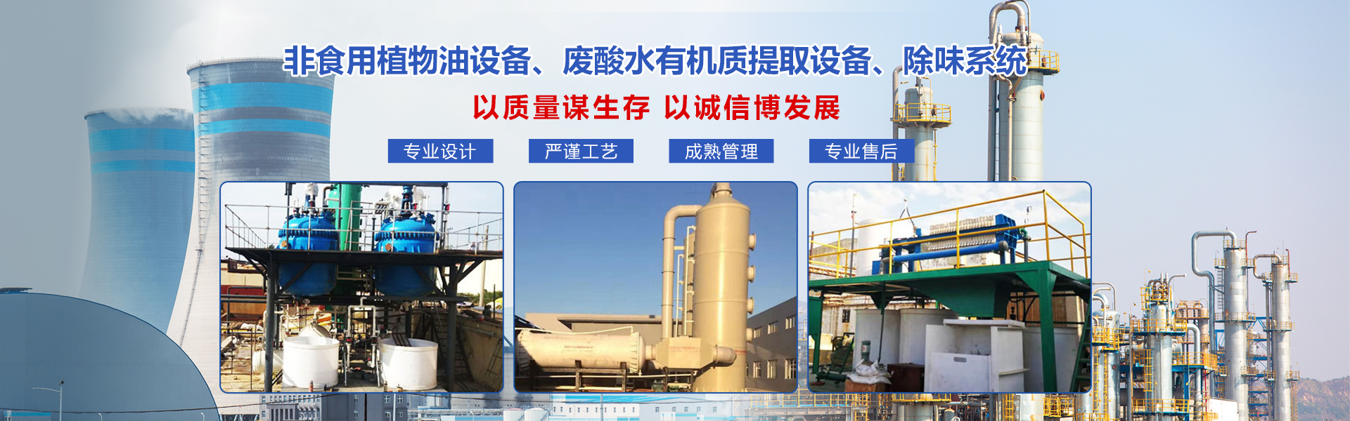 海南盛陽世紀(jì)機械設(shè)備有限公司是一家專門從事非食用植物油生產(chǎn)設(shè)備、廢酸水有機質(zhì)提取設(shè)備、除味系統(tǒng)、水處理工藝設(shè)備的設(shè)計、研發(fā)、制造、銷售、租賃以及技術(shù)培訓(xùn)、自動化設(shè)計等一站式服務(wù)的專業(yè)公司